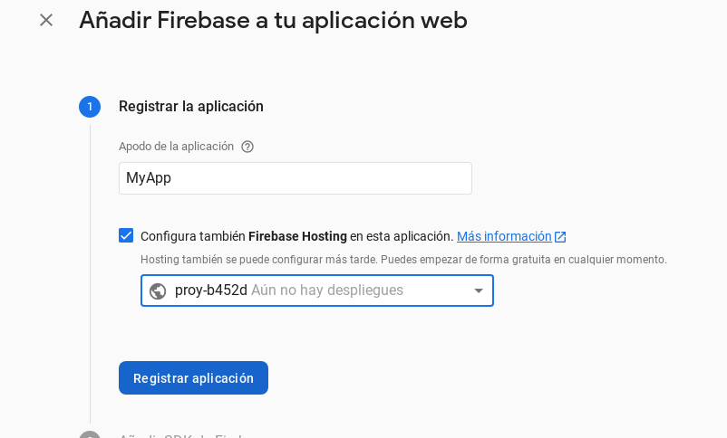 Seleccionamos la opción de aplicación web